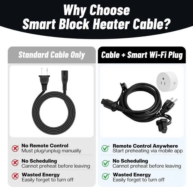 Smart Remote Preheat: Wi-Fi smart plug allows you to start or schedule engine preheating from your smartphone (iOS & Android), ensuring your vehicle is warm before driving