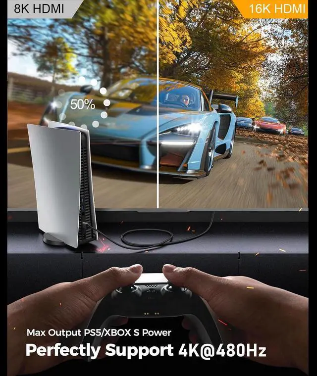 Future-Ready 16K PerformanceSupports 16K@30Hz/60Hz (future-ready) + today's 8K@240Hz/120Hz/60Hz,4K@480Hz/360Hz/240Hz,1080P/60Hz/120Hz/144Hz ideal for content creators, gamers, and home theaters