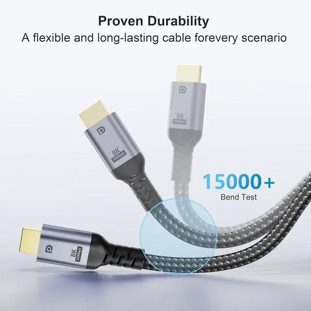 40FT, Conquer Long Distence & Large Spaces Our 40ft DP cable is the ultimate solution for complex installations like dedicated home theaters, auditoriums, or stage setups where your media source and display are far apart. It delivers a stable 8K signal where shorter cables fail, eliminating the need for costly signal extenders