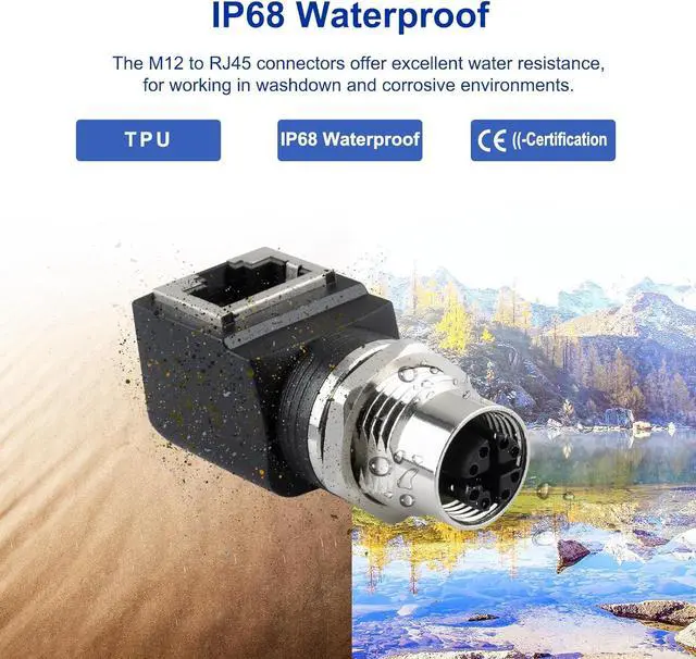 IP68 WaterproofIndustrial Ethernet 4 Pin X-Code M12 RJ45 Shielded Connector are IP68 Compliant.High elastic rubber ring and clamping nuts provide a perfect waterproof /dust-proof, prevent the network parts from moisture, dirt rain & snow and insects for quality connections.