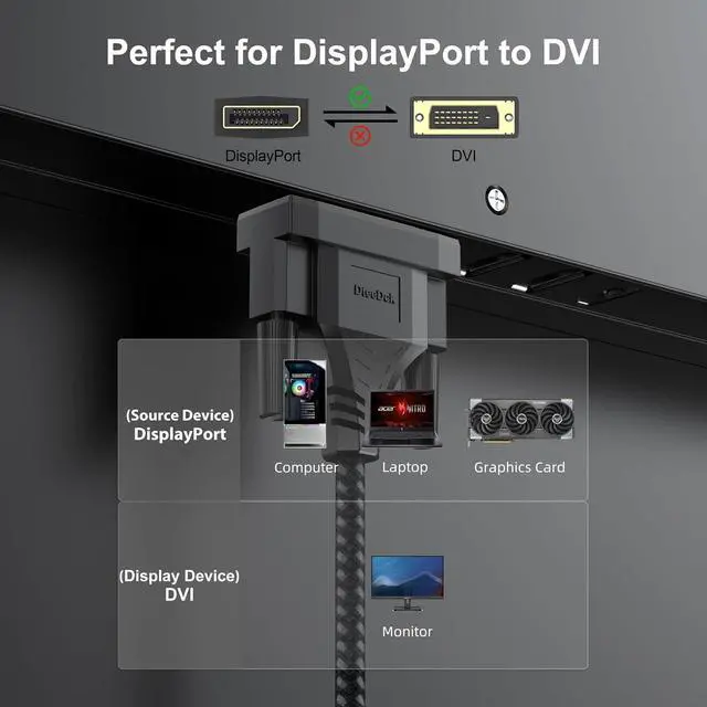 Wide CompatibilityThe display to dvi cable connect desktop pc laptop to monitor. Compatible for Lenovo, Dell, HP, ASUS and other devices with DP port.