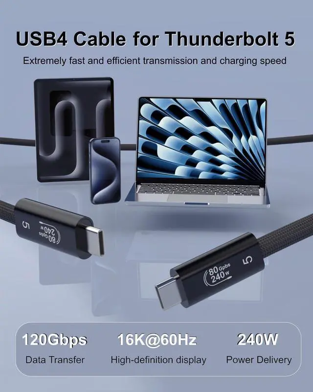 Ultra-Fast Data TransferTransfer music, movies, or entire seasons of TV shows in seconds, up to speeds at 40Gbps, 2x faster than previous generation USB4 cable, making it ideal for heavy data handling tasks.[The final effect depends on whether your device supports USB4, Thunderbolt 4/3.