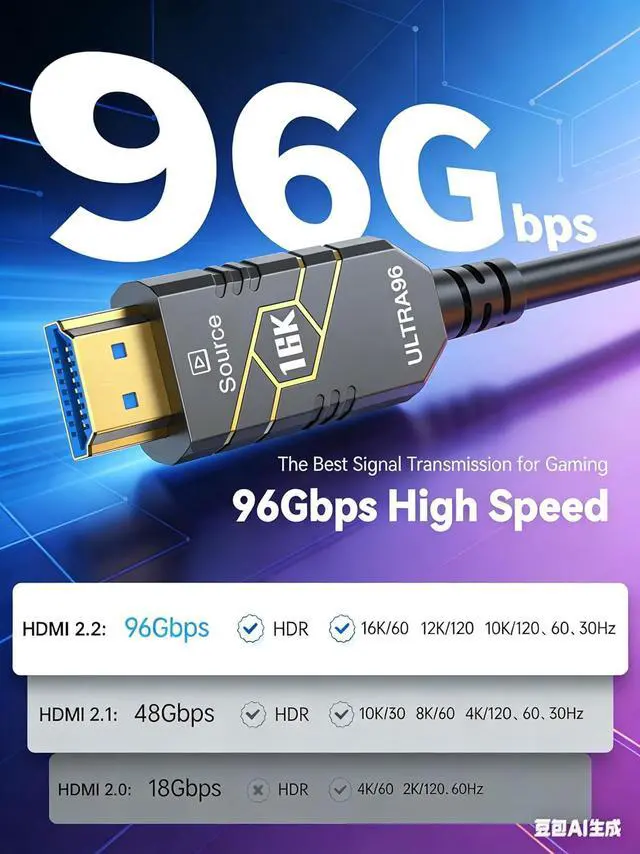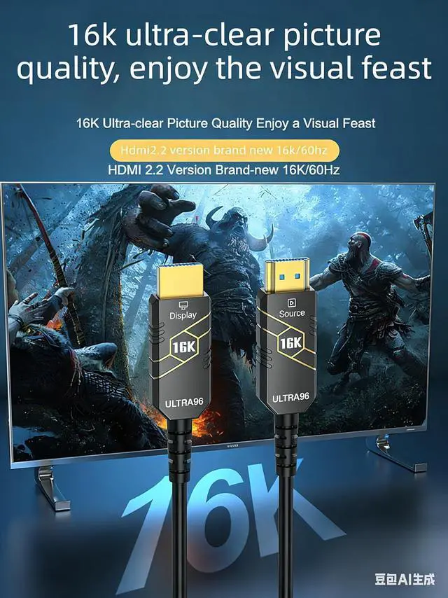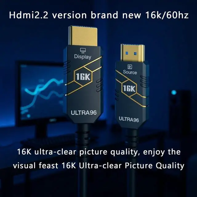 1. Fiber optic hdmi 2.2 cable 16K is most reliable way to transfer. Support 16K 60Hz, 10K 120Hz, 8K 240Hz, 4K 480Hz. Audio Return Channel (ARC) & Ethernet. The maximun resolution is up to 15360×8640. It is applicable to all devices adopting HDMI 2.2 standard and backward compatible with previous HDMI 2.1, 2.0, 1.4, 1.3, 1.2, 1.1. 16K HDMI2.2 Cable can be compatible with all existing HDMI communication interface devices.