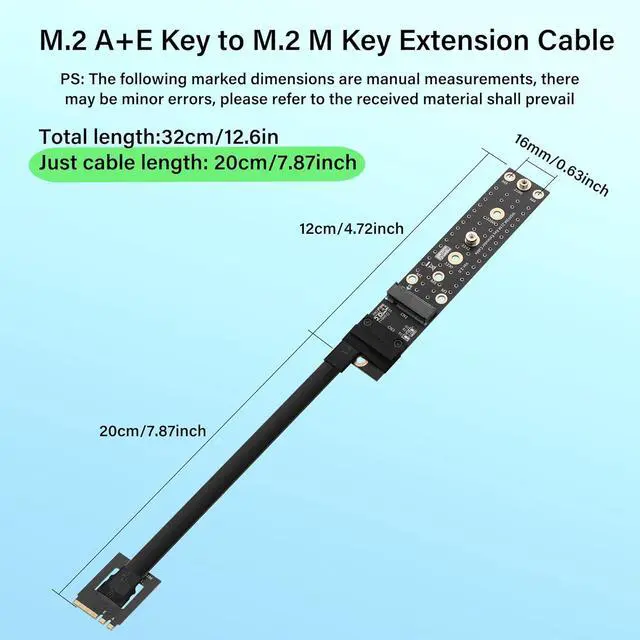 FunctionM.2 Key A+E to M.2 SSD extender cable can be used to upgrade M.2 hard drive interfaces, and for faster boot-ups. Supports NVM Express(NVME)protocol only