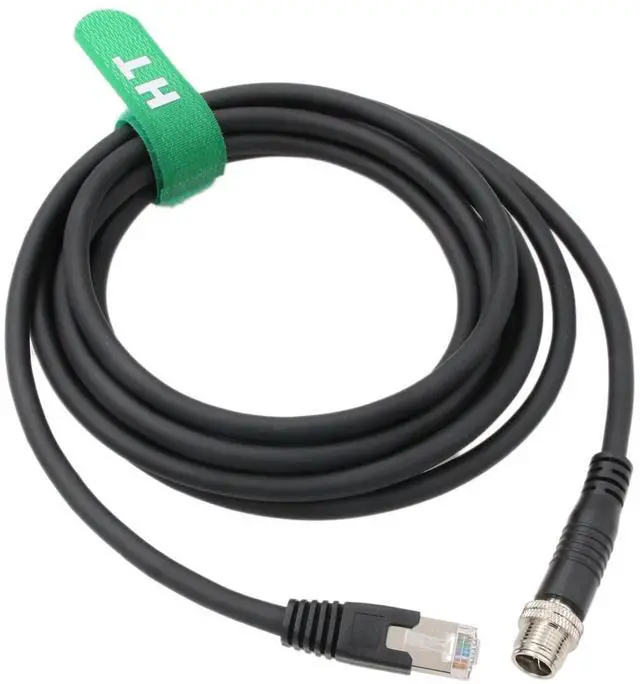 M12 Ethernet cable for Basler Baumer image processing vision sensor, for Keyence IV3 sensor / SR-5000 barcode reader, for Datalogic matrix 220 320 reader, for Microscan HAWK MV-4000 camera, for SICK sensor gigabit network, for Triton, and more machine vision system to network communication application like PC host computer PLC router switches