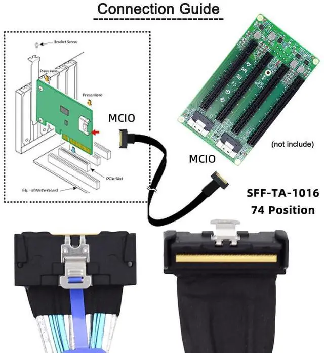 Easy to use: Simply plug in the MCIO 74 Pin end of the cable into your device and the MCIO end into your external hard drive, and you're ready to go.