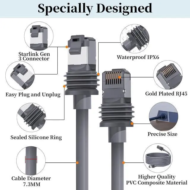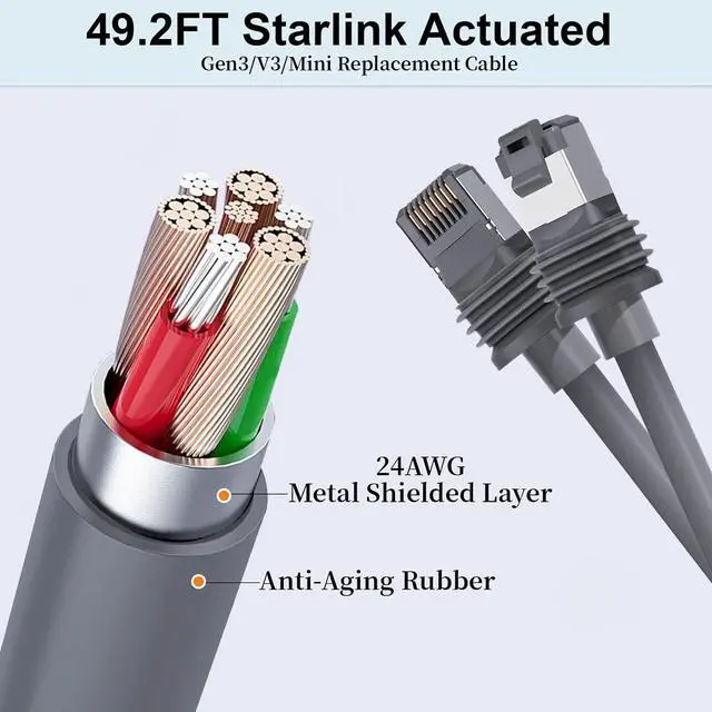 Universal Compatibility:49.2FT replacement cable Works with Starlink Gen 3, Mini, and Rectangular V3 satellites. Plug-and-play design requires no drivers or setup