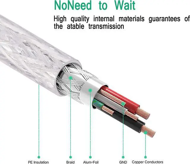 Features foil & braid shielding, gold plated contacts and copper twisted-pair construction providing excellent performance,you can clearly see the internal structure.