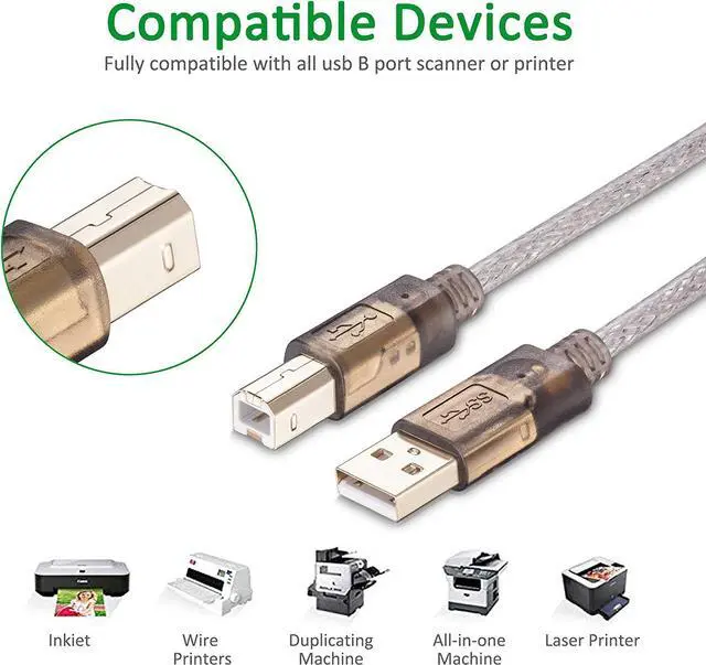 Used with printers with standard USB type B interface such as HP series e.g. Deskjet/ Officejet, Canon, Pixma, Lexmark,Dell, Brother, etc.
