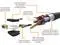 HDMI TO DVI: Flexible cable adapts an HDMI (input) to a DVI (output)