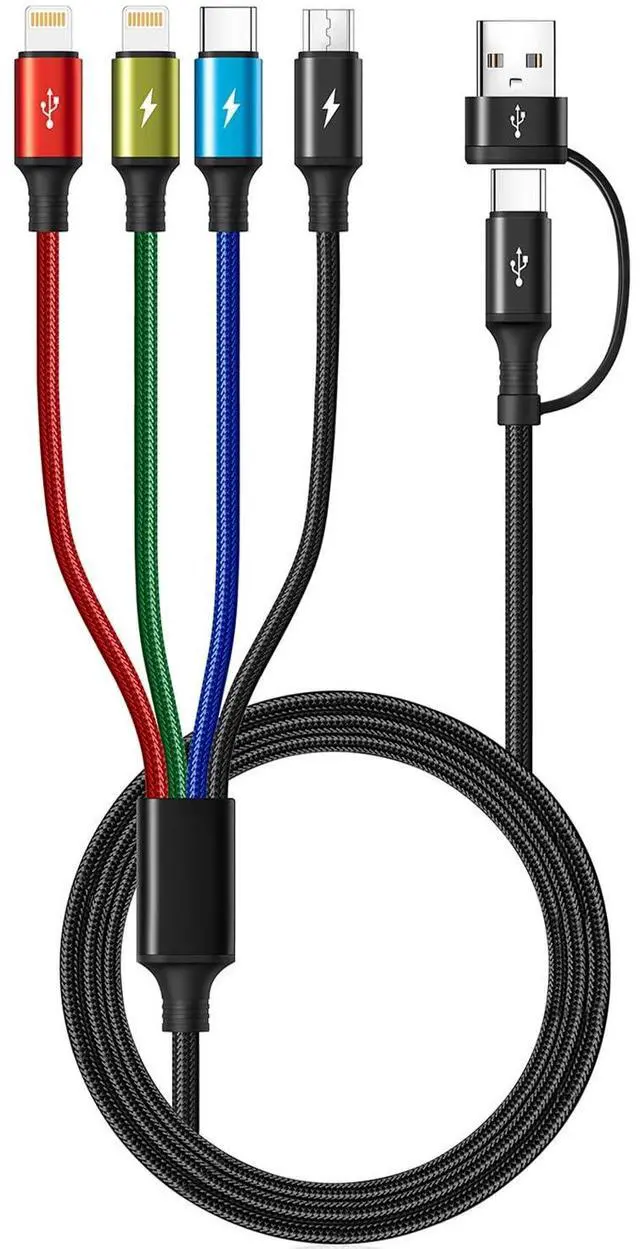 6 in 1 Multi Charging Cord for All Devices: The up-to-date 6 in 1 design with USB A/C to 4 different USB ports. Including Dual Lightning, Micro-USB and USB Type C connectors support to charger most of the cell phones available on market.Perfect for home use, office, travel, car, uber lyft business or sharing with friends.