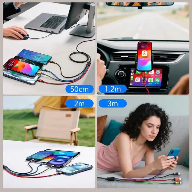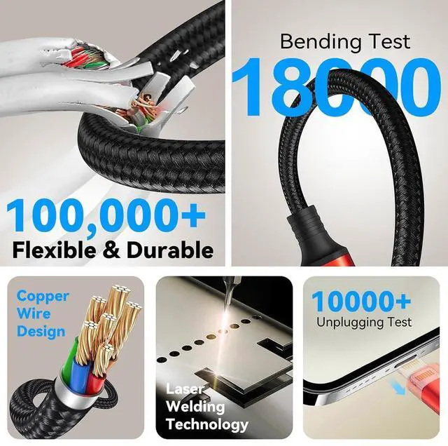 Charging Fast and Data Transfer: The maximum total output current can be up to 4A (total, not each end), charge faster than most 4-in-1 or 3-in-1 cables and work better for tablets and Pad charge devices. (Only Lightning Port support fast data transfer and CarPlay, USB-C and Micro-USB port just for charging )