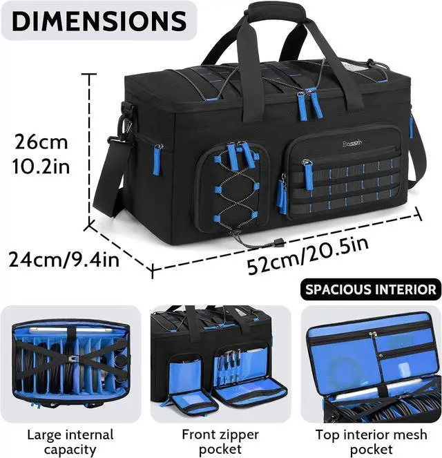 Large Capacity & Multi-pockets: With size of 20.5''×9.4''×10.2', the cable bag easily keeps many cables and DJ accessories organized. The DJ gig bag has 2 deep zippered front pockets, 2 side zip pockets, 3 inner mesh pockets, and a dedicated laptop pocket.