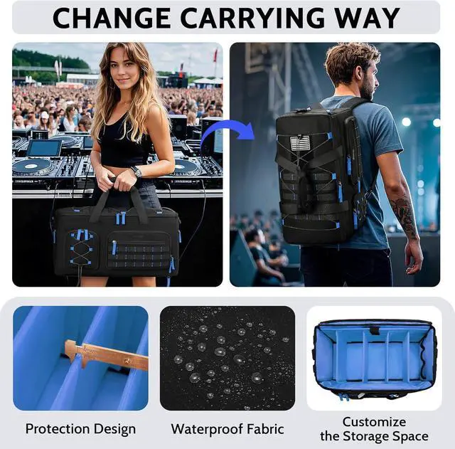 Easy to Carry: This DJ bag offers four carrying options, featuring a back luggage strap, padded handles, a detachable adjustable shoulder strap, and concealable straps, making it easy to carry by hand or on the shoulder. It is perfect for DJs, musicians, and frequent travelers.