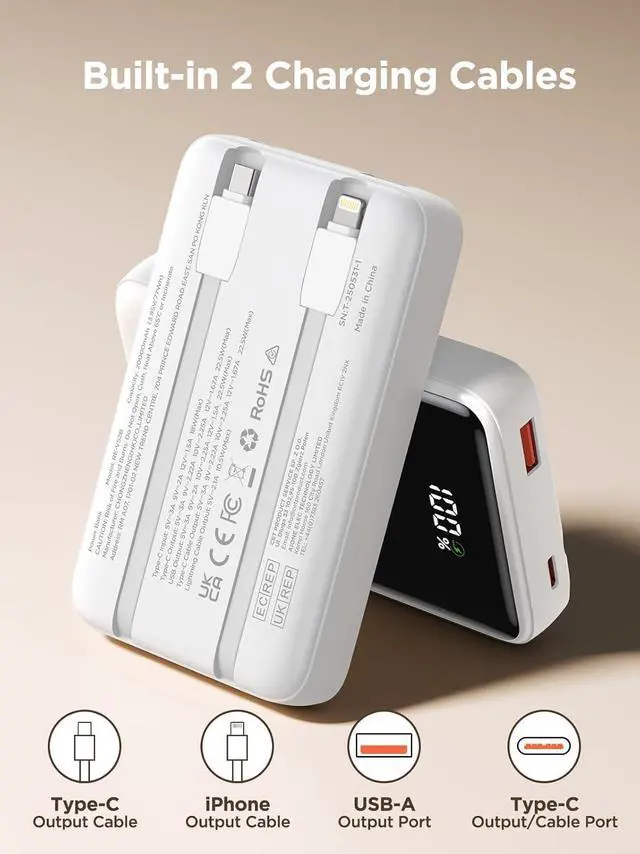 What You Get: Aioneus Portable Charger * 1, 0.3M/1ft USB-A to USB-C Cable * 1, Power Bank User Manual * 1, Aioneus Nylon-braided USB-C charger cords 10ft 3Pack(Blue,Grey,Gold) * 1