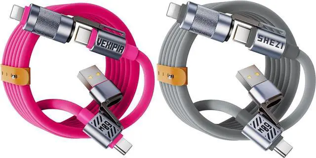 [4-in-1 Multi Charging Cable for All Devices] Simplify your charging setup with our versatile 4-in-1 usb-c cable. It combines 4 ports - USB-C to Lightning, USB-C to USB-C,USB A to USB-C and USB-A to Lightning, - in one cable. Providing a comprehensive solution for your fast charging and data transfer needs.