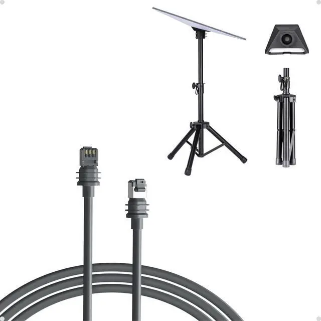 This bundle is designed to enhance your Starlink setup with both reliable connectivity and versatile installation options. The **Ethernet Cable for Starlink Standard/Gen 3 and Mini** is a durable 5M/16.5FT extension cable made with a waterproof barrel jack and 26AWG CAT5E wiring. Capable of 1000Mbps data transfer, it's perfect for outdoor use, even in extreme temperatures. Whether it's freezing cold or sweltering heat, this cable ensures consistent, high-speed connectivity for your Starlink system. Paired with the **Adjustable Tripod Stand for Starlink Standard Gen 3**, this bundle allows for easy, flexible installation. Made from stainless steel and featuring an aluminum pipe adapter, the stand provides a height adjustment range of 80-110cm, making it perfect for a variety of outdoor setups. The tripod stand is easy to install and includes a carrying bag for convenient transport, ensuring that your Starlink system can be set up wherever you need it, with the added benefit of portability and stability. Together, these two products provide a powerful solution for both reliable internet connection and adaptable mounting, ensuring a seamless and efficient Starlink experience, whether at home, on the go, or in remote locations.