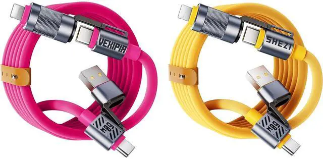 [4-in-1 Multi Charging Cable for All Devices] Simplify your charging setup with our versatile 4-in-1 usb-c cable. It combines 4 ports - USB-C to Lightning, USB-C to USB-C,USB A to USB-C and USB-A to Lightning, - in one cable. Providing a comprehensive solution for your fast charging and data transfer needs.
