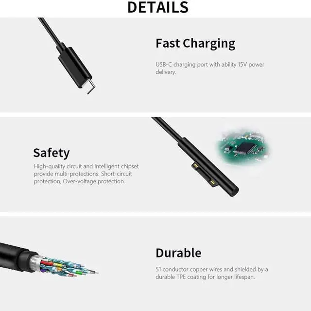 Reliable Performance: Ensures stable and efficient power delivery to keep your Surface devices powered up.