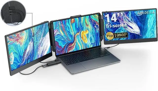 USB DATA to video signal conversion cableApildella 2-in-1 USB-C data cable is tailor-made for M1/M2/M3 MacBook. Connect it to the C port at the bottom of the second screen to provide video signal, and then connect a USB cable to provide power to this side screen. You can use tri-screen simultaneously to improve work efficiency. : Need to download driver after connecting.