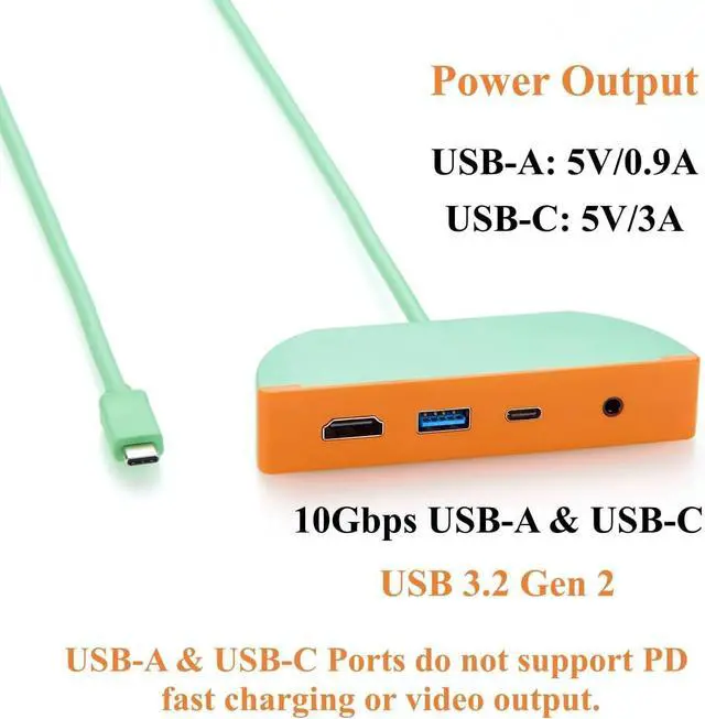 SuperSpeed 10Gbps USB-A & USB-C The USB-C and USB-A ports Both support USB 3.2 Gen 2, delivering data transfer speeds up to 10Gbps for fast and stable performance. The USB-A provides 5V/0.9A Power Output, and USB-C port provides 5V/3A power output for connected external SSDs, flash drives, keyboards, mice, and other USB peripherals.(Note: These ports support data transfer and power output only and do not support PD fast charging or video output.)