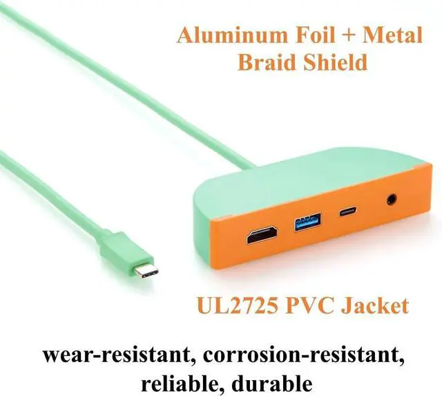 High Quality & Durable The 4 in 1 USB C Hub Multiport Adapter uses multi-core copper wire conductors, offers excellent conductivity. Aluminum foil + Metal braid shielding to effectively resist electromagnetic interference (EMI). UL2725 PVC sheath is wear-resistant, corrosion-resistant, reliable, durable, and ensures stable signal transmission.