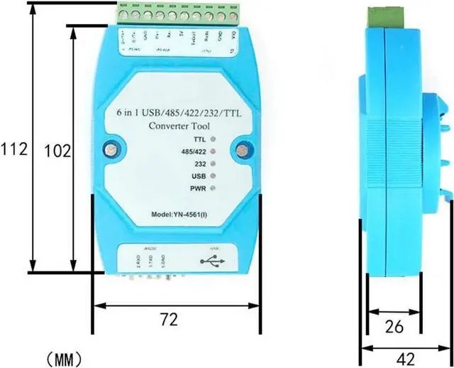 It can switch between USB, RS-232, RS-485 / 422, and TLL levels without the need for jumper dial switch settings.