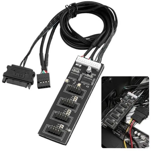 1. ** Construction**: The 9Pin USB Header Splitter is designed with durable materials to ensure a reliable connection for your devices. This cable adapter is perfect for connecting your CPU, RGB lights, and printers, providing a seamless extension to your setup.