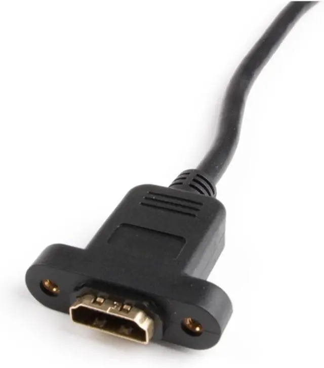 There is screw hole Compatible With HM female. can be fixed at the back panel.