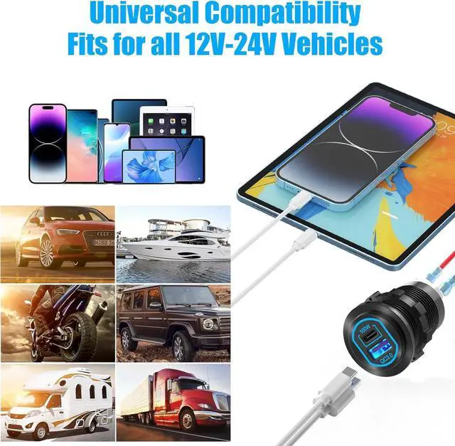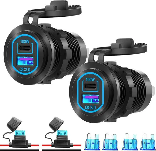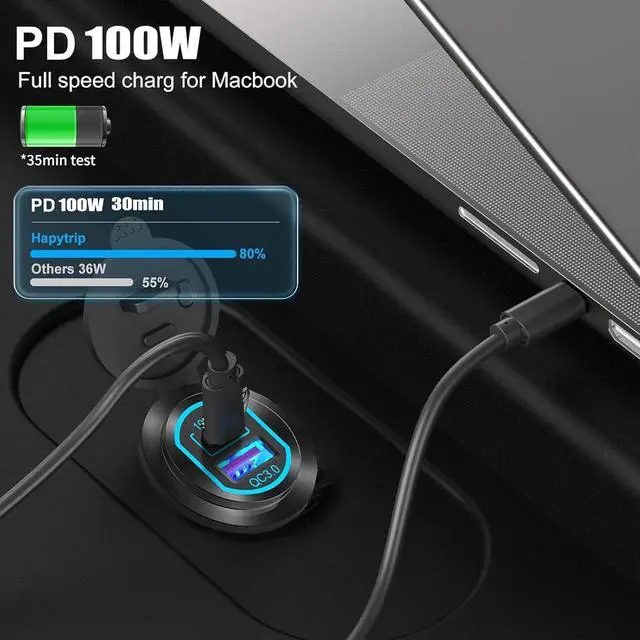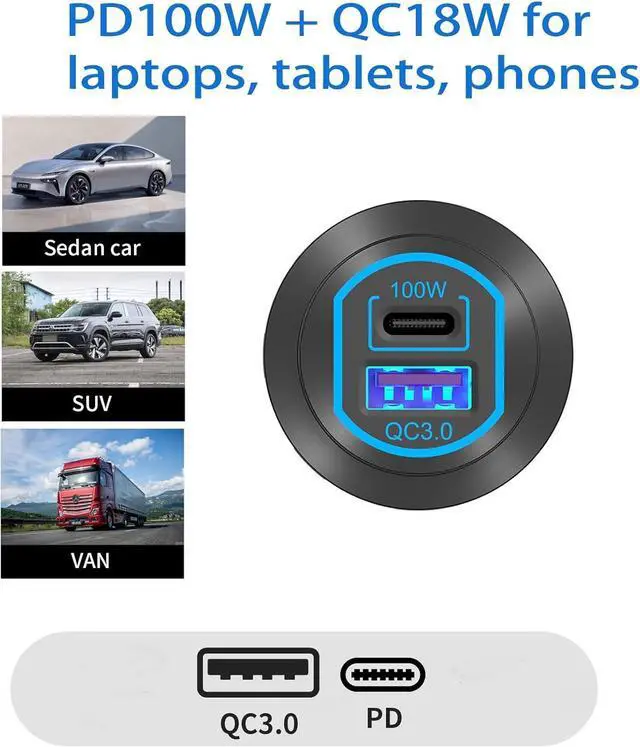 High-Efficiency Fast Charging: 12V USB outlet dual ports deliver a combined output power of 118W. Utilizing PD 3.0 100W and QC 3.0 18W fast charging technologies, it can simultaneously charge two devices at full speed while providing the fastest possible charging for all non-fast-charging devices.