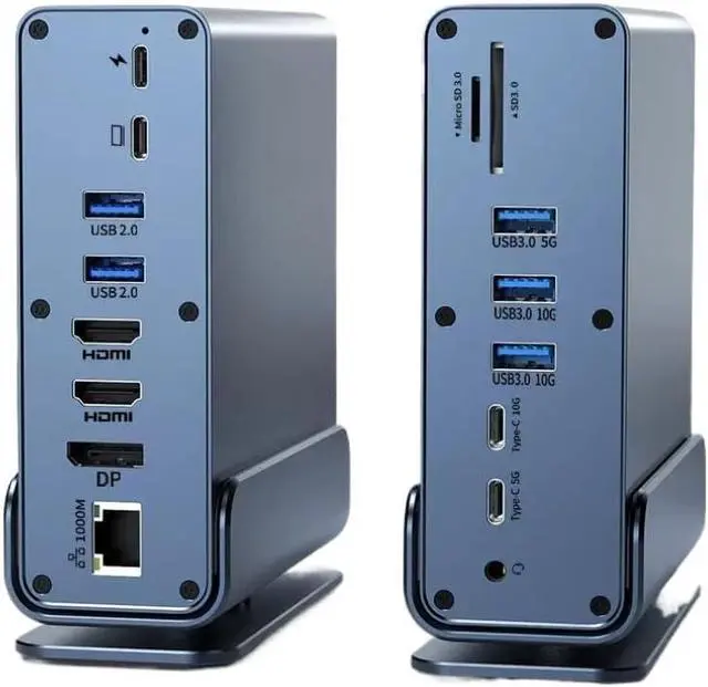 Port Configuration: Includes USB-A, RJ45, SD, TF, 3.5mm audio, and Type-C ports matching the 15-in-1 hub functionality described.