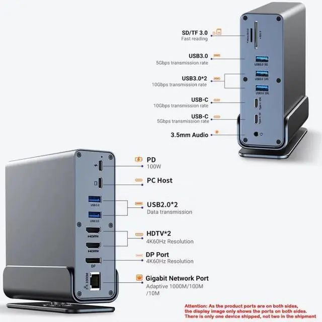 Physical Design: Features a hub-type docking station form factor with aluminum housing as indicated in the title.