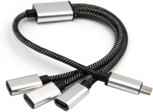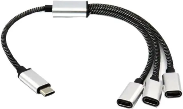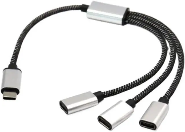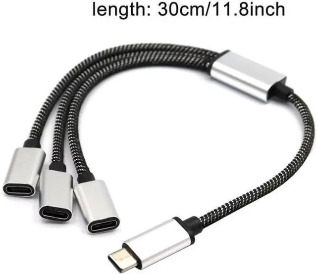 USB C Male To 3 USB C Female Splitter Cord Converter Multiple Hubs USB C Port Hub Charger Power Split Adapter Material: Nylon + Aluminum Length: 30 cm Data Transmission Speed: 480 Mbps Plug Type: None Ports: 3 USB C female ports Compatibility: Compatible with devices featuring a USB C interface, including phones, tablets, and laptops This USB C male to 3 USB C female splitter cord converter allows connection of up to three USB C peripherals to a single USB C port.It supports data transfer for peripherals such as USB C card readers, USB drives, keyboards, mice, and data cables.The splitter features a braided exterior and aluminum casing.It does not support audio or video transmission and does not require external power. This is a compatible aftermarket component.Brand names are cited solely to show which devices it works with.