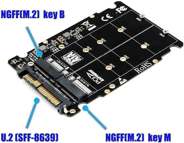 M.2(Key M) to U.2 adapter for M.2 NVMe SSD, M.2(Key B) to U.2 adapter for M.2 SATA SSD.
