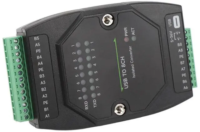 Durable ABS Housing & Clear Status Indicators: Encased in rugged ABS material, this USB to RS485 serial port adapter features intuitive LED indicators (PWR, ACT, TXD, RXD) that provide real-time visibility of power status and data transmission across all eight channels.