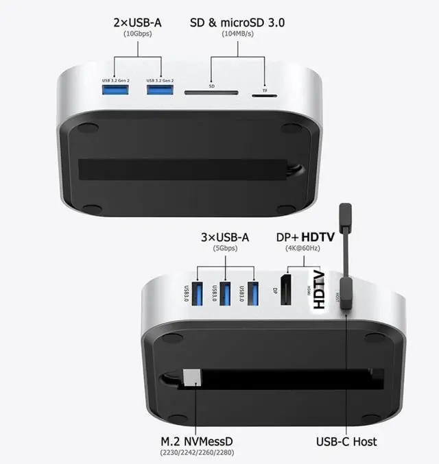 Supports dual monitor output via Typec to DP with 4K60Hz video transmission for enhanced productivity and multimedia use