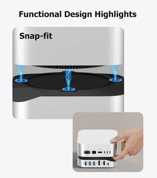 Compact docking station design with multiple ports ideal for office setups, remote workspaces, and content creation environments
