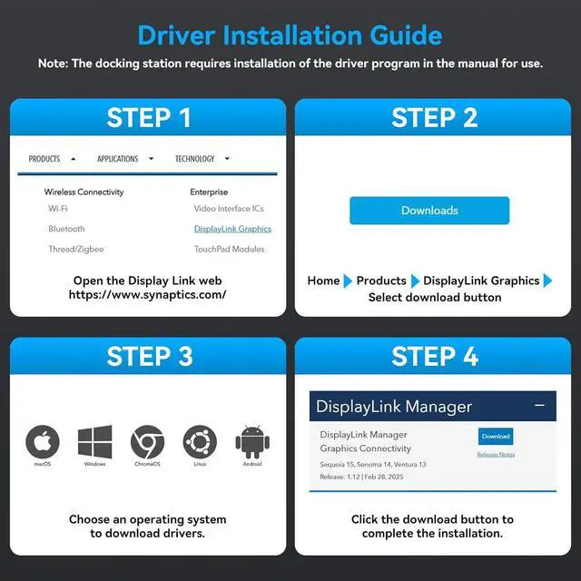 Important Notice1. Please ensure that your laptop must be equipped with a USB-C 3.2 (or higher) interface,Other USB-C interfaces cannot be used. 2. This KVM Switch Docking Station don't support PD charging. 3. OUT1/OUT 2 only supports one output and can output to a maximum of two displays. 4. The USB-C port on the front panel only transmits data and does not support PD charging or video transmission.5.For optimal 4K@60Hz performance, please using high-quality cables (under 3 feet/1 meter is ideal) that support DP 1.4 and HDMI 2.1 standards