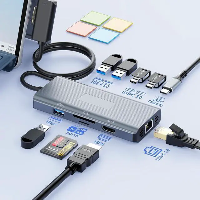 New 10-in-1 Microsoft Surface Dock with Charger With this Surface all-in-one adapter, you can easily expand your laptop's single Surface connection port into 10 ports, including 1x 4K HDMI port, 3x USB 3.0 ports, 2x USB-C data transfer ports (with speeds up to 5Gbps), 1x USB-C PD 100W power delivery port, Gigabit Ethernet (1Gbps), and an SD/Micro SD card reader. Enjoy seamless plug-and-play connectivity with Surface devices