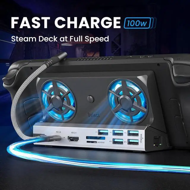 10-in-1 Handheld Console Dock:Transforms your Steam Deck OLED/ASUS ROG ALLY/ Legion Go's USB Type-C into 10 ports: 4K@60Hz, Gigabit Ethernet (1000Mbps),3 USB3.0 (5Gbps), 3 USB2.0, USB Type C PD 3.0 (100W),VGA,DP1.2 port,this docking station will meet your all need when you playing games.