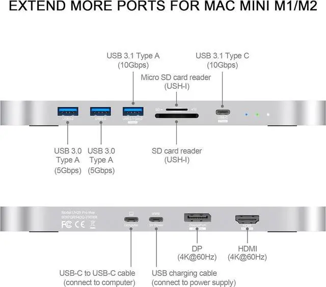 Comprehensive Compatibility: It supports Mac Mini (2018 Intel, 2020 M1, 2023 M2/M2 Pro) and Mac Studio (2022 M1 Max/M1 Ultra, 2023 M2 Max/M2 Ultra).