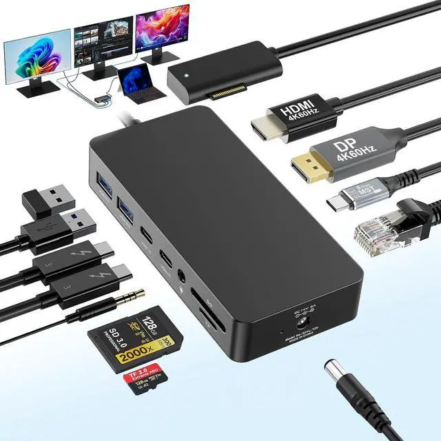 2026 Latest 12-IN-1 Surface Docking Station Hub The 2026 latest Surface Dock offers effortless plug-and-play connectivity, transforming your Surface into a complete workstation. With dual 4K@60Hz HDMI, 4K@60Hz DP, USB-C full-function port (video + 5Gbps data + 5V/3A charging), Gigabit RJ45, 2×USB-C data, 2×USB 3.0, SD/Micro SD 3.0 card slots, and a 120W DC power supply, this Surface Docking Station is perfect for boosting productivity at home, in the office, or on the go.