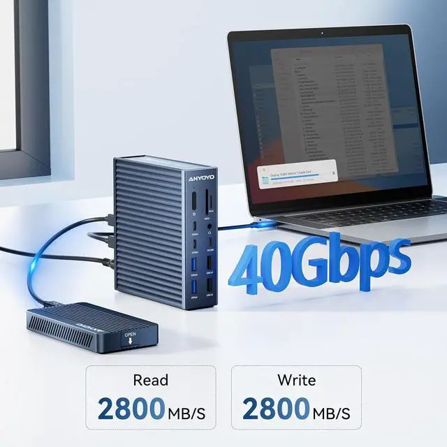 Single 8K or Dual 4K Display :This macbook dock compatible with thunderbolt 5/4/3 devices, equipped with 2*40Gbps interfaces and one HDMI interface, which allows you to expand two displays. You can connect a single 8k or dual 4k display and support high-definition video output, suitable for image and video processing and high-quality entertainment experience.
