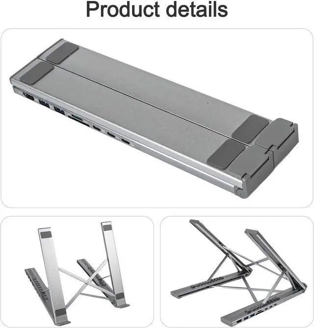 Ergonomic 8-in-1 USB-C Laptop Stand: Combines docking station and adjustable computer stand, helping improve posture and forestall neck/back discomfort during long hours of work or study.