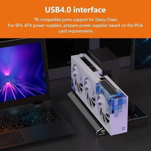• Versatile Compatibility: This GPU dock is suitable for NUCs, laptops, and gaming consoles, featuring a USB 4.0 interface that enhances gaming performance with external GPU connectivity.