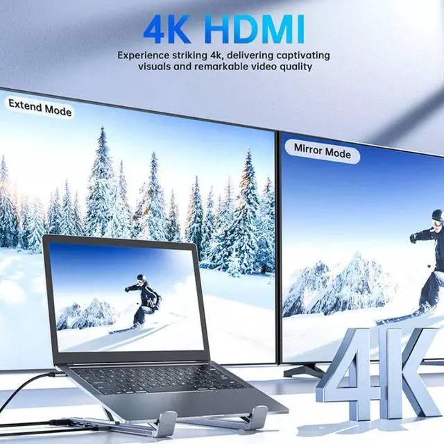 4K HDMI Display Output: This USB-C Docking Sation Laptop Stand with 4K HDMI supports high resolution output up to 3840x2160 enabling mirror or extend mode for multitasking suitable for office streaming design tasks requires usb c laptop stand with docking station supporting display function