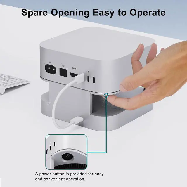 Easy Power Button Access Without Lifting:Integrated bottom power button groove allows you to turn on your Mac mini without removing it from the stand. Anti-slip silicone pads keep your device secure and protect against scratches.