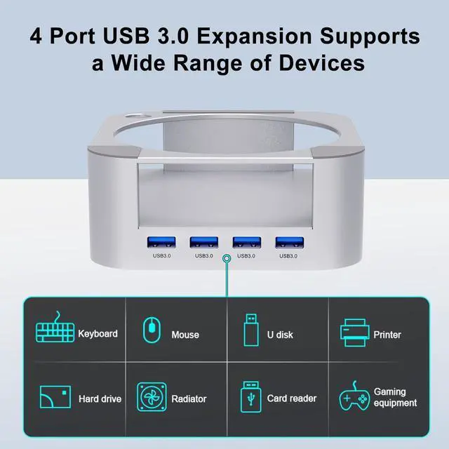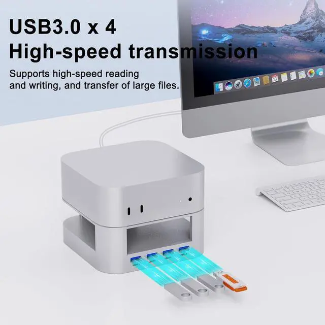 4 USB-A High-Speed Data Ports (Back Expansion):Features four rear USB-A ports for fast data read/write, ideal for keyboards, mice, external SSDs, USB flash drives, and other daily peripherals. No drivers requiredplug and play.