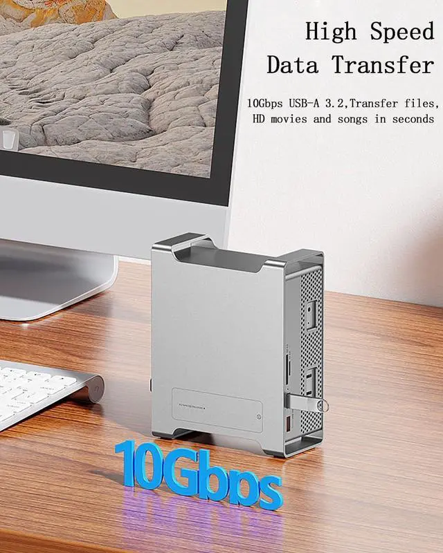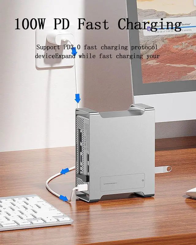 100W PD port:The dock has 100W PD power port,Can directly charge Mac Mini M4/M4 Pro through the port