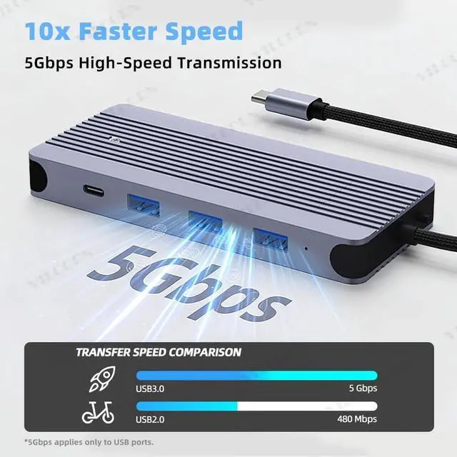 Blazing-Fast Data Transfer & 4K@60Hz Ultra-High DefinitionExperience lightning-fast data transfer speeds of up to 5Gbps with the USB 3.0 ports, ideal for transferring large files in seconds. No longer need to worry about the problem of insufficient USB ports, which can bring great convenience to your life and work. Enjoy crystal-clear visuals with 4K resolution at 60Hz refresh rate perfect for streaming, presentations, or immersive gaming experiences.